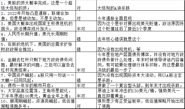本来不太想写这个内容,因为把去年的十大预测兑现的部分改点内容,一些没有兑现的部分放到今年就可以当今年的十大预测了,中间的偏差就是投资中苦苦寻觅的圣杯——节奏,而这个近乎是很难完全解决的问题,尤其是看到结果,很难掌握兑现前的节奏,“知行合一”,知道还能重仓做到。实际连李佛摩尔、索罗斯这种世纪大师都很难做到完全节奏正确,节奏是投资上的不存在的“圣杯”,也许只存在于我们的主观愿景中,毕竟投资本身就是概率游戏的一种。