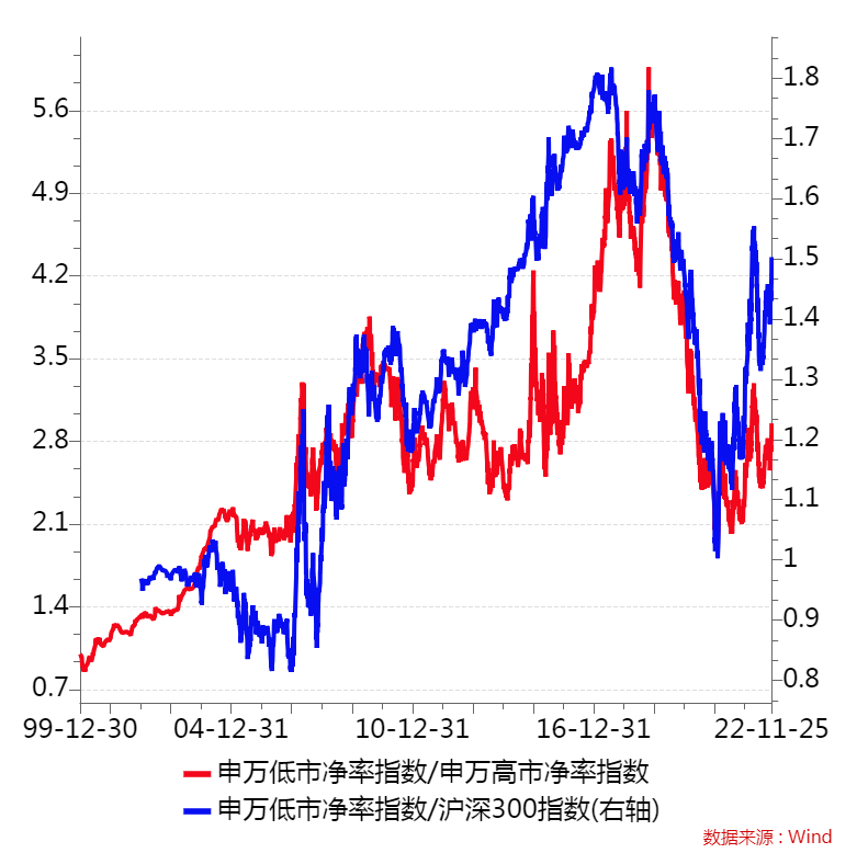 2022年煤炭股是比较亮眼的少数几个行业中的龙头,然而我却在4月份中旬左右次高点附近卖了我的煤炭持仓,因为我觉得性价比因素已经吸引不了我的兴趣,而我的主要资源类仓位是在其他资源类中。低估值策略已经出现了一年的领先,如下图,低市净率指数已经出现了一定程度的相对收益,扭转了2年的颓势。经过两年的“公募散户化,头部私募公募化”的非理性泡沫繁荣,大家也许忘记了投资中最重要的事情,当泡沫化集体走向荒谬的时候,是没有人关注风格,用各种荒谬的理论来解释泡沫的荒谬,4000亿市值用完整周期现金流阐述牧原股份价值1.2万亿,用二十年现金流折现阐述恒瑞医药价值160元。然而这些解释注定是荒谬的,极致抱团的风格产物注定是要反杀,“估值一定会回归”才是投资中最为质朴的真理,高估值的反杀的过程中也许只能用“投资无常”、“投资最大的不变就是变化”、“成长能抹平估值”来安慰客户40%的回撤。